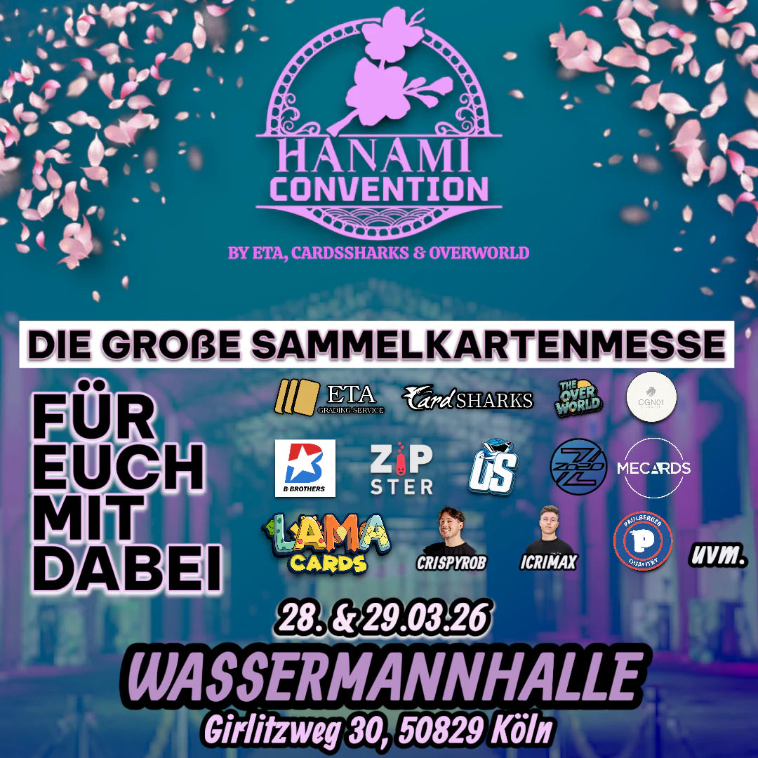 Die Hanami Convention ist deine neue Sport- & TCG-Messe in Köln: Zwei Tage voller Trading, exklusiver Händler, Sammler-Tische und bekannter Creator – alles unter einem Dach. Am 28. und 29. März verwandeln wir die Wassermannhalle, in Köln, in einen Treffpunkt für Sammler, Spieler und Content-Creator aus ganz Deutschland.